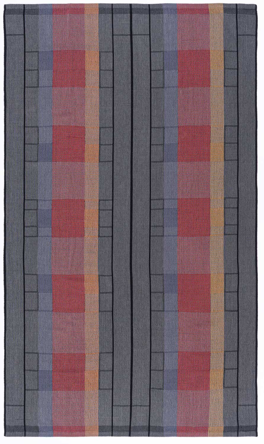 Arts & Crafts design in grey, poppy red, accent navy and gold